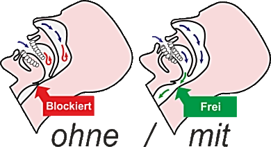vorne gehalten, der Zungengrund rutscht nicht mehr nach
